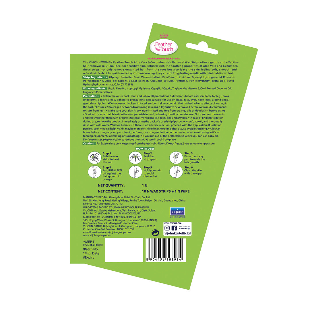 VI-JOHN Feather Touch Aloe vera & Cucumber Hair Removal Wax are designed for easy, quick, and smooth hair removal. Infused with the goodness of rose and aloe vera, these strips are perfect for normal skin, leaving it soft and nourished.