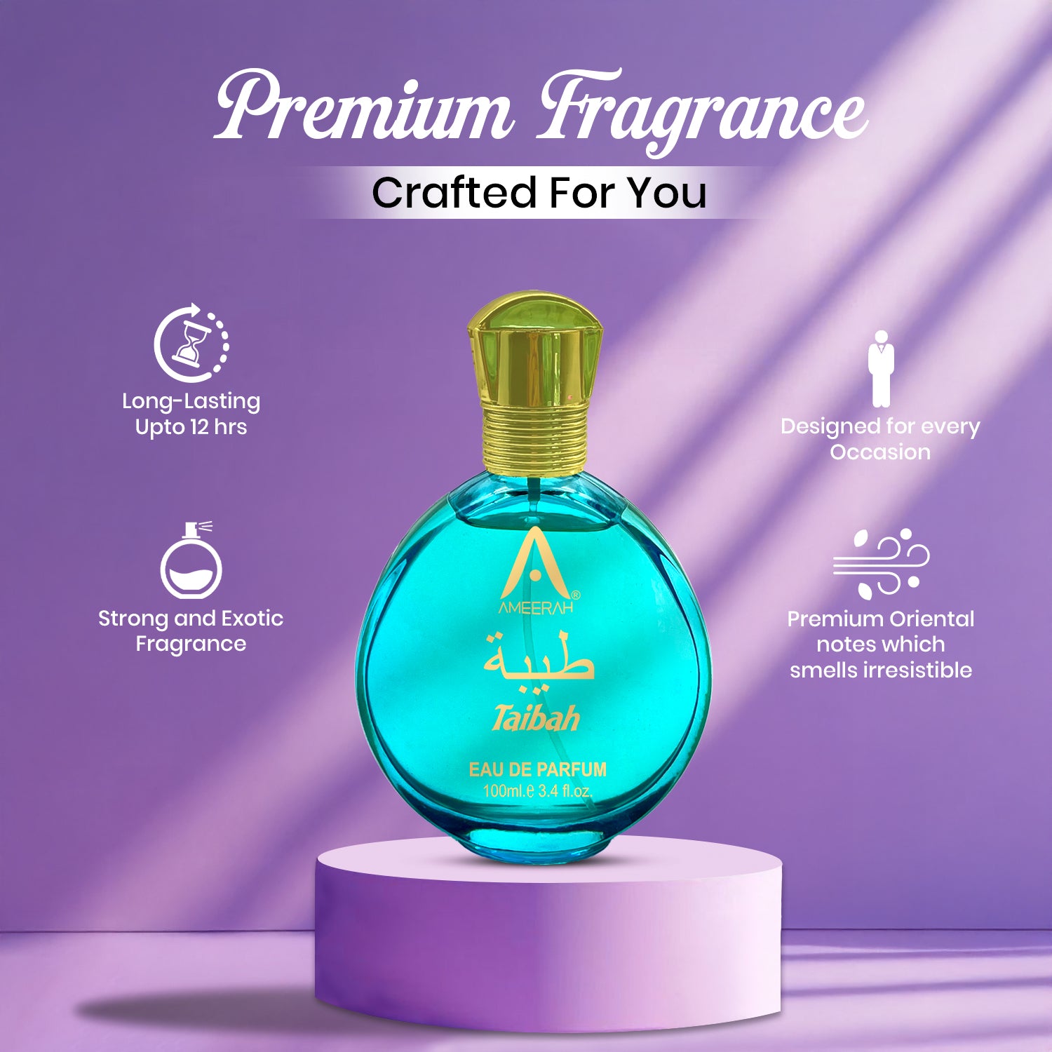 Ameerah Taibah is a delightful oriental fragrance that blends sweet fruity notes with warm amber and musk. Its feminine charm makes it a perfect pick for everyday wear, gatherings, and festive moments. With its long-lasting attar base, the fragrance stays beautifully on the skin for hours.