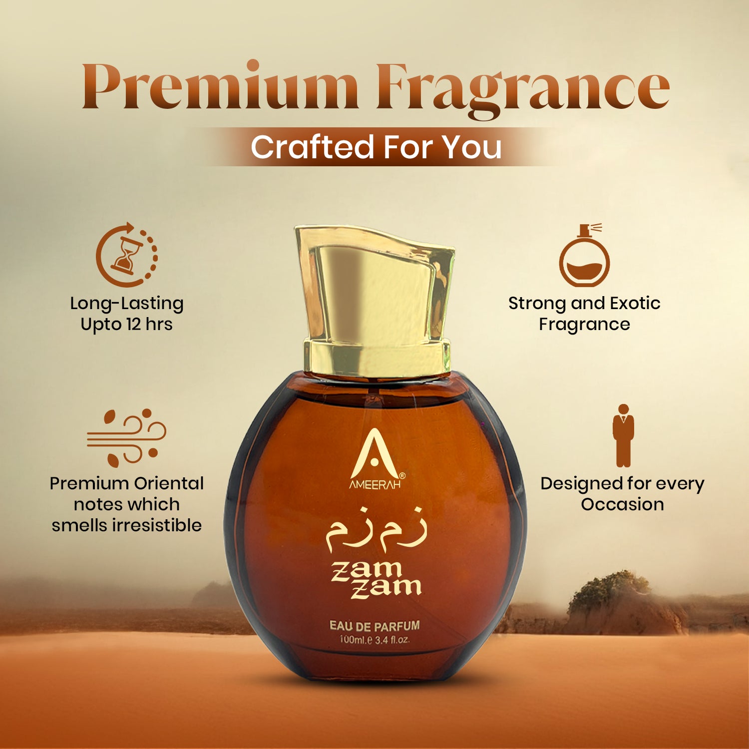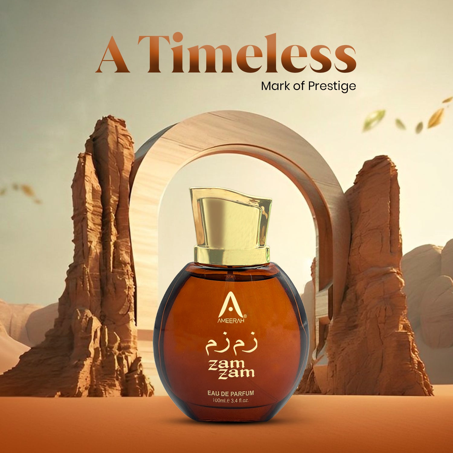 Ameerah Zam Zam is a pure and refreshing oriental fragrance inspired by the essence of serenity. Soft floral notes blend seamlessly with gentle musk, creating a clean, uplifting scent perfect for everyday use. Crafted as a premium alcohol-free attar, it offers long-lasting freshness suitable for both men and women.