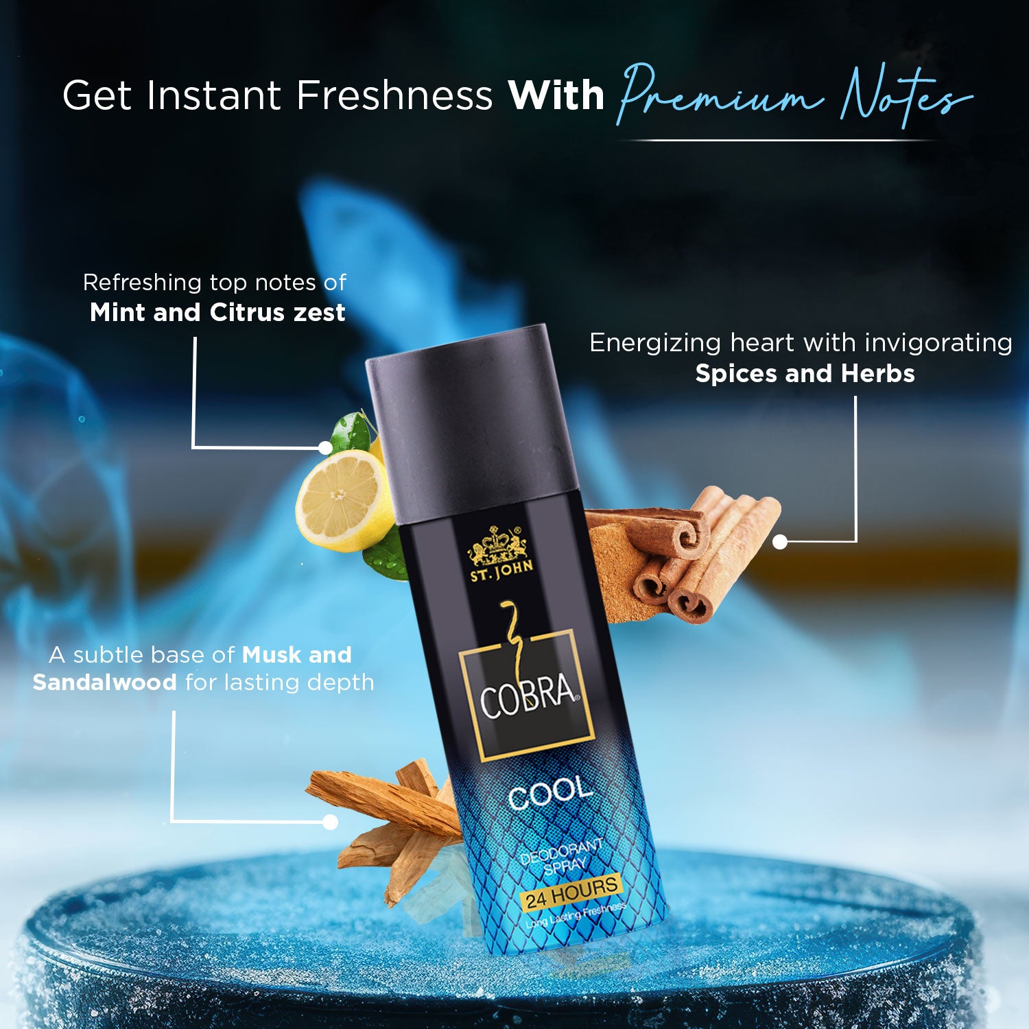 Elevate your freshness game with the Cobra Active Deo Combo. This trio of long-lasting perfumed body sprays is designed to keep men and women feeling fresh and confident all day. Featuring the refreshing and cool notes of the Cool Deo, the invigorating citrus burst of the Live Deo, and the powerful allure of the Sport Deo, this combo ensures you are ready to tackle any day with energy and vitality. Perfect for those who seek a blend of freshness, energy, and lasting fragrance in their daily routine.