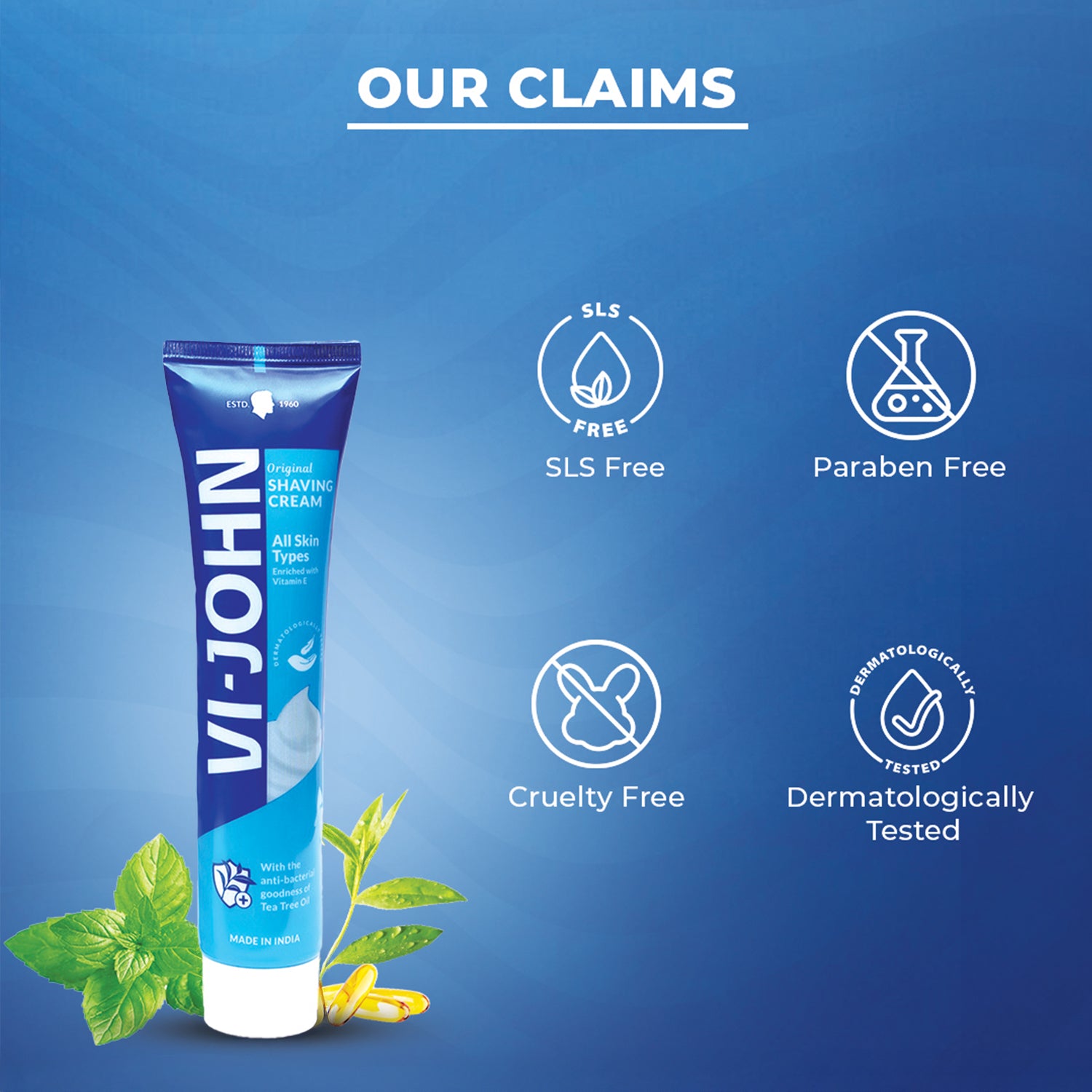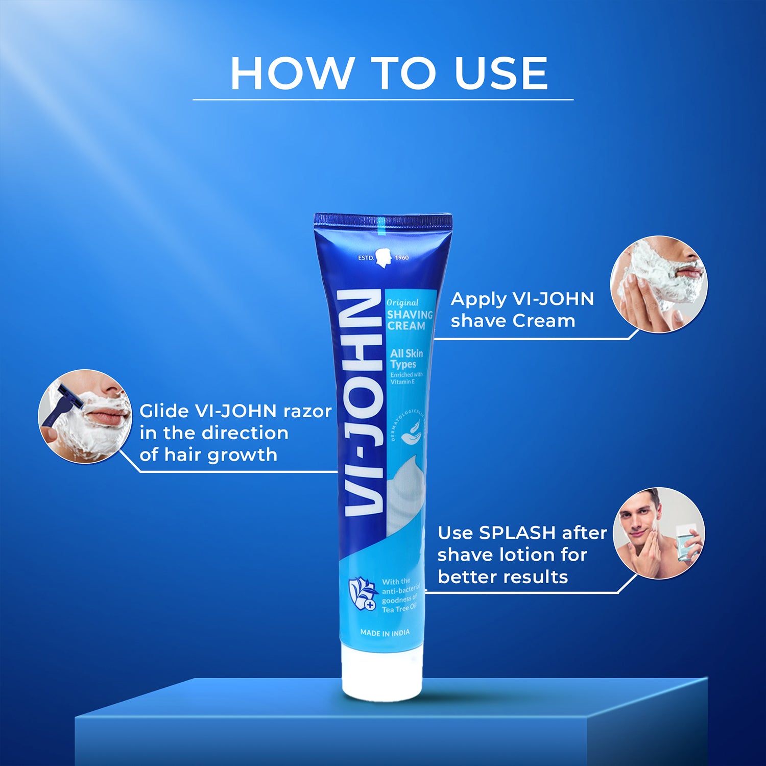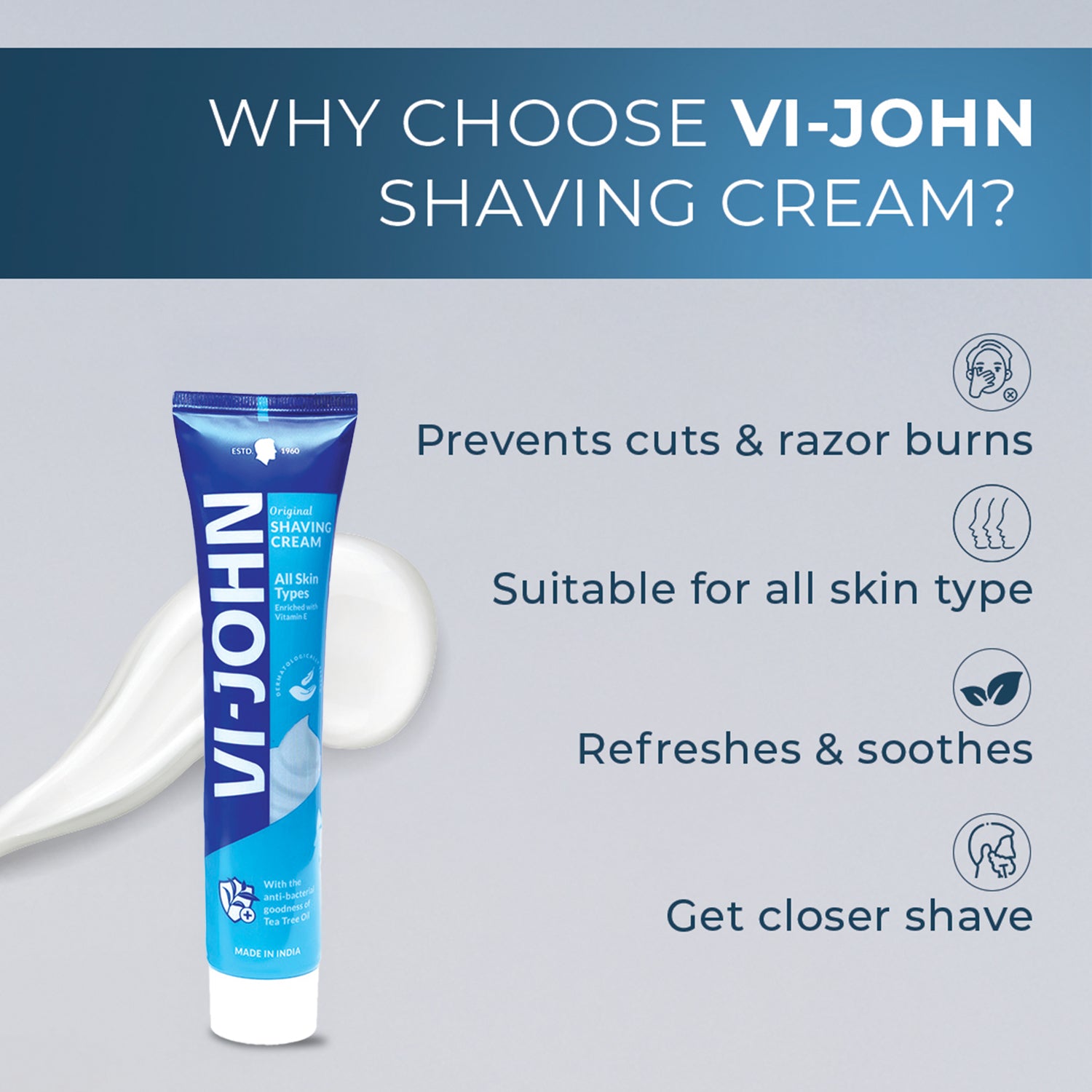 It's not your average shaving cream. VI-JOHN's proprietary formula gives the skin an added layer of protection and moisturizing prior to, throughout, and following shaving. With the antibacterial strength of Bacti-Guard, the therapeutic strength of tea tree oil, and the softening moisture of vitamin E, it's the best for men who demand smooth, healthy-looking skin shave after shave.