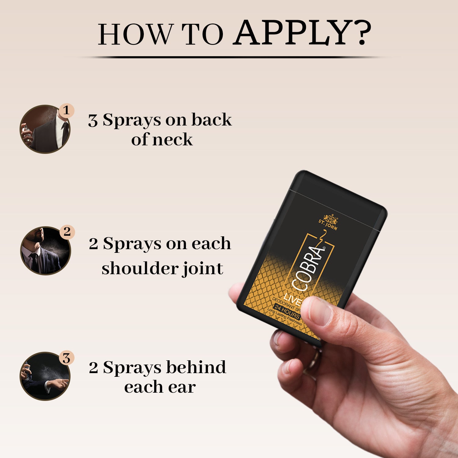 Elevate your freshness game with the Cobra Active Deo Combo. This trio of long-lasting perfumed body sprays is designed to keep men and women feeling fresh and confident all day. Featuring the refreshing and cool notes of the Cool Deo, the invigorating citrus burst of the Live Deo, and the powerful allure of the Sport Deo, this combo ensures you are ready to tackle any day with energy and vitality. Perfect for those who seek a blend of freshness, energy, and lasting fragrance in their daily routine.