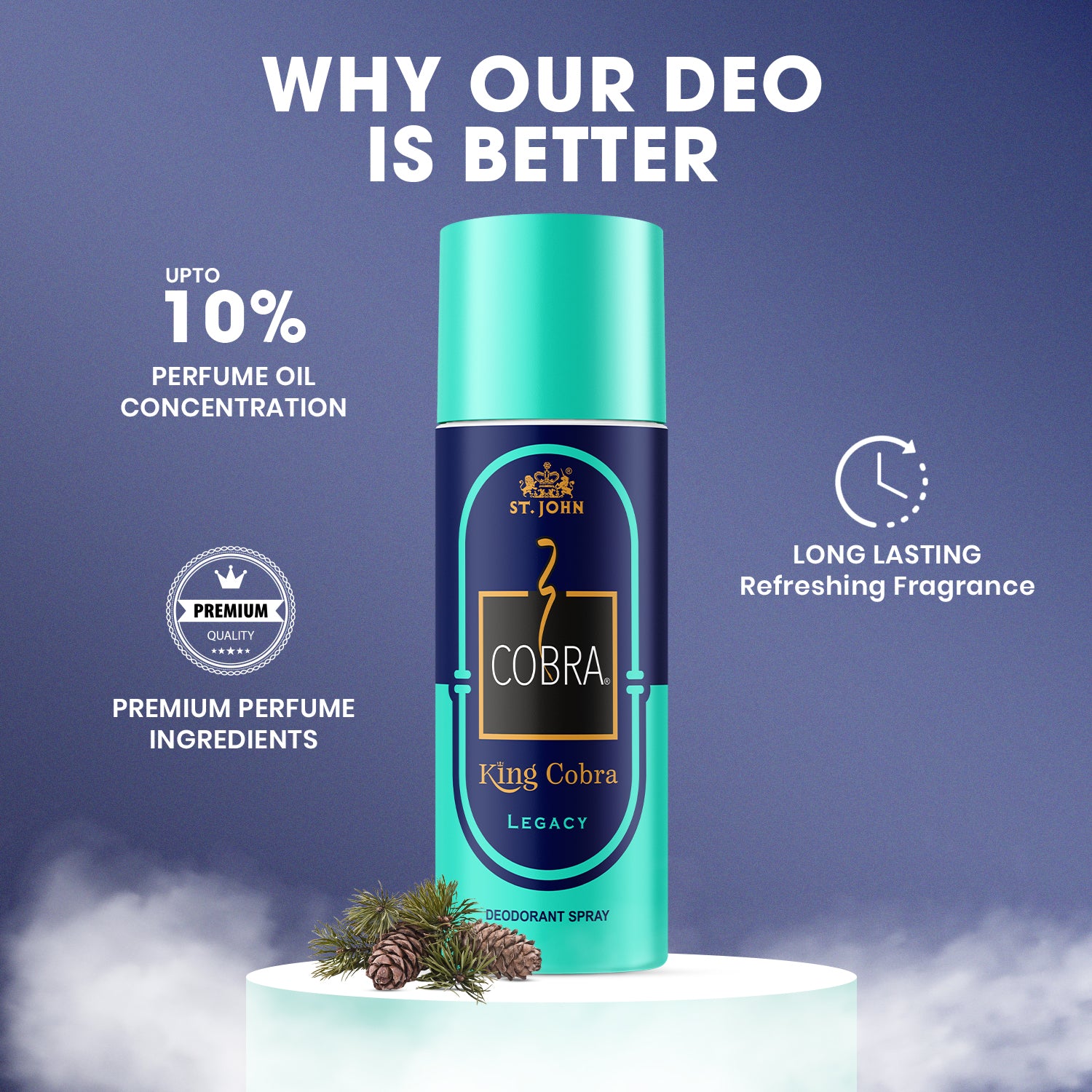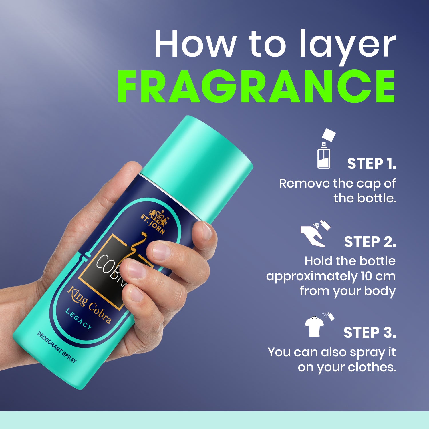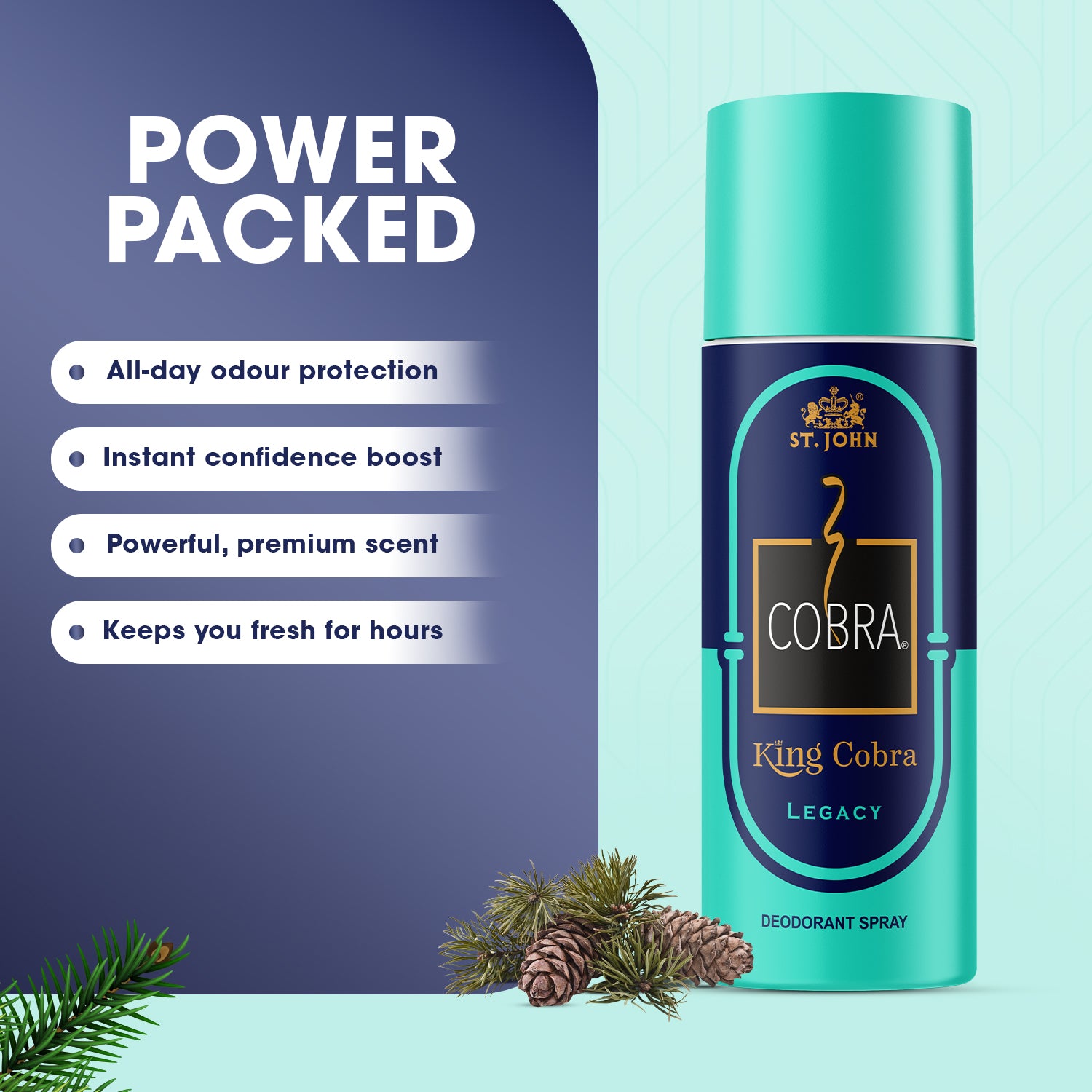 King Cobra Legacy Deo offers reliable all-day odour protection while maintaining a balanced, non-overpowering scent. Its premium fragrance profile makes it ideal for office wear, casual outings, workouts, and evening occasions.