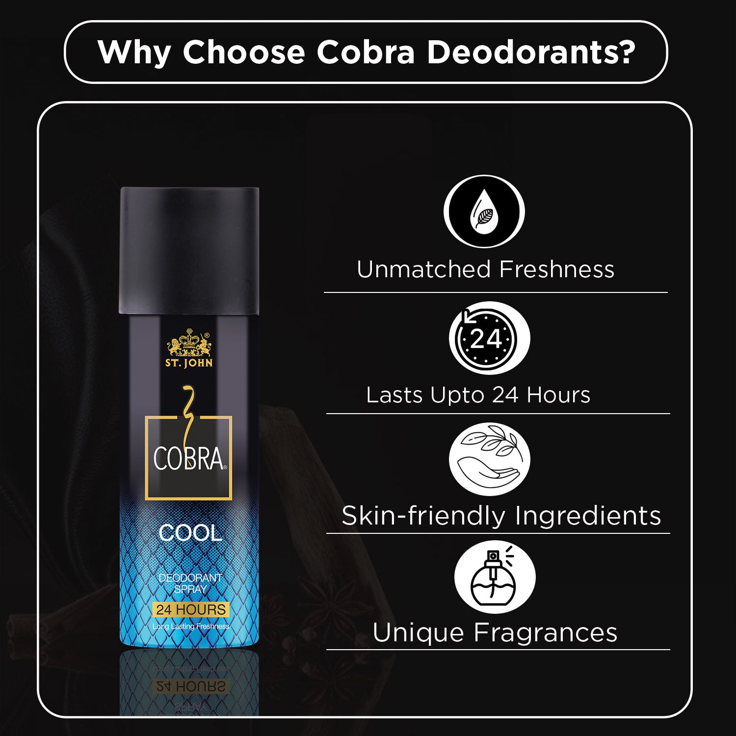 Are you on a quest for the best men's deodorants in India? Look no further! Introducing the St-John Cobra Deodorant, a cool, long-lasting perfumed body spray that elevates your everyday freshness game.