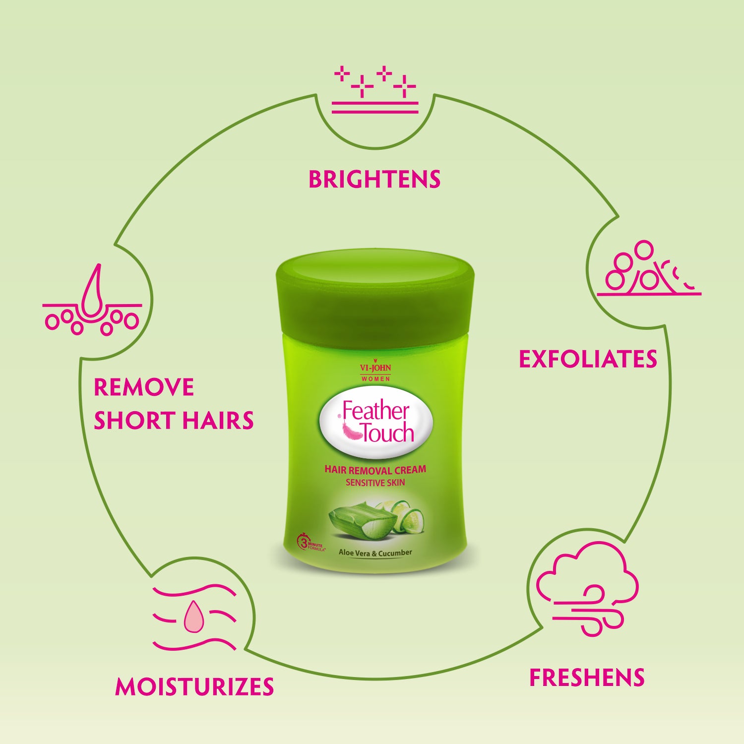 If you have sensitive skin, hair removal is more of a gamble—waxing hurts, shaving causes cuts and itchiness, and most creams make your skin dry or itchy. That is where VI-John Feather Touch Aloe Vera and Cucumber Hair Removal Cream fills the gap—it is designed to be the best hair removal cream for sensitive skin; it removes excess hair fast, silky, and painlessly.