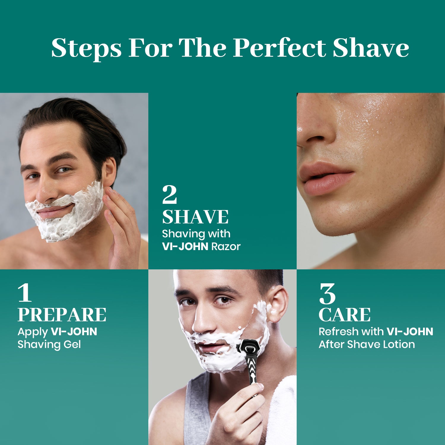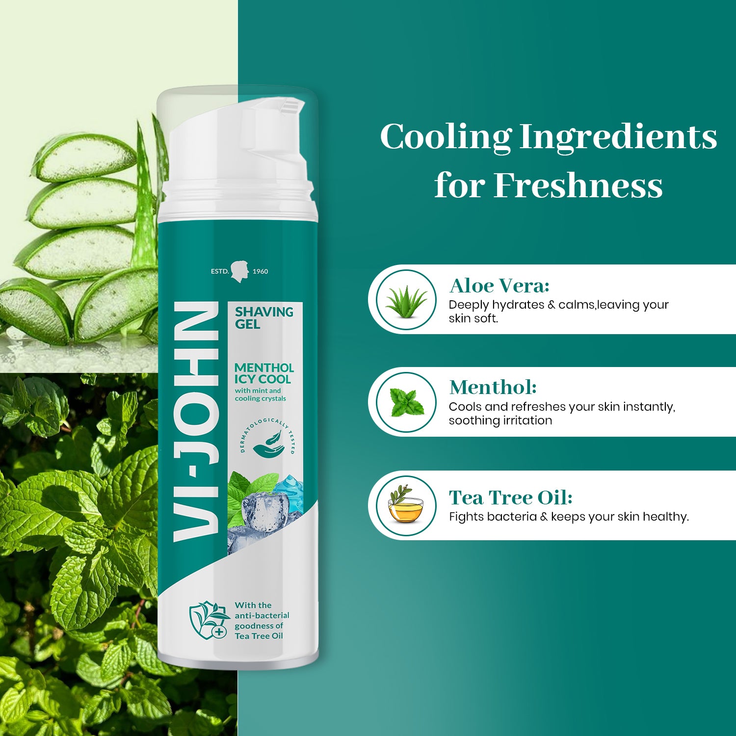 Get ready to feel the chill with VI-JOHN Menthol Icy Cool Shave Gel, a perfect blend of mint, menthol, and cooling crystals that gives you an unmatched refreshing shaving experience. Designed for men who like to start their day with energy and confidence, this premium gel provides a cool, soothing sensation that awakens your skin and senses. The advanced formula ensures a smooth and effortless glide, helping the razor move seamlessly across your skin to reduce irritation, razor burns, and cuts.