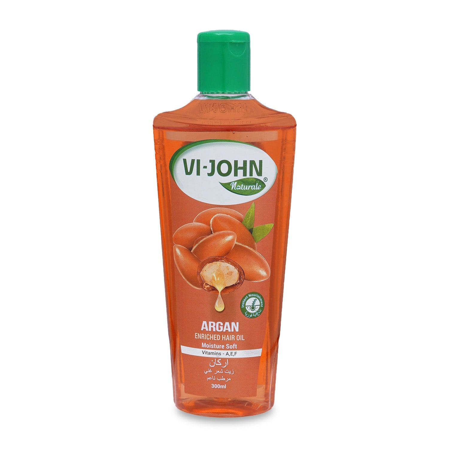VI-JOHN NATURALE Argan Enriched Hair Oil is a luxurious hair product designed for hair nourishment, hair revival, and hair rejuvenation, right from the roots to the tips of the hair. With the added natural benefit of argan oil, famous for its hair moisturizing, rejuvenating, and restorative properties, the 300ml hair oil works towards reviving shine, frizz, and fortifying hair. Its non-sticky, light-weight formulation dries quickly, without any greasiness, giving your hair a soft, silky, easy-manageable, and lustrous appearance, while also encouraging healthy, radiant, and naturally growing hair.