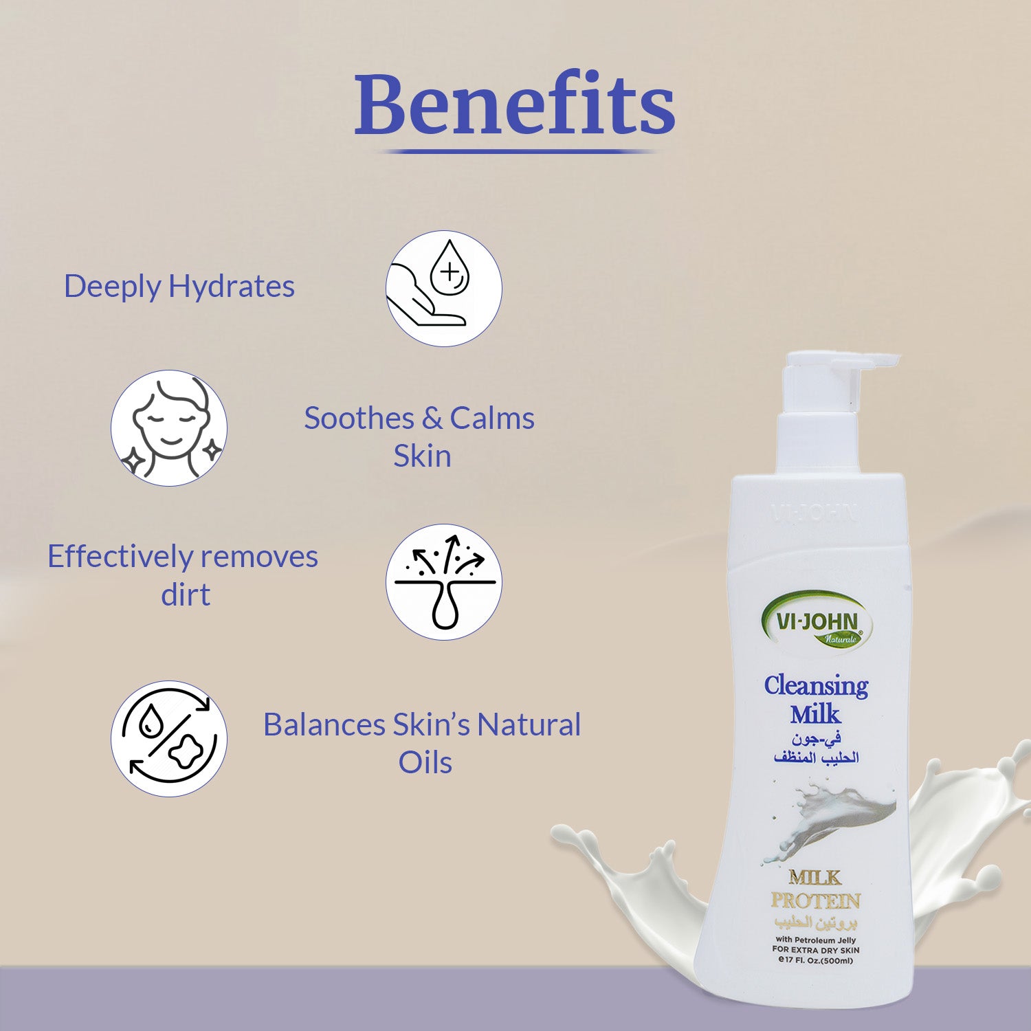VI-JOHN NATURALE Cleansing Milk with Milk Protein The VI-JOHN NATURALE Cleansing Milk with Milk Protein is a very good skin cleanser as it will take deep into your skin without causing it to be dehydrated. The skin-cleansing milk will rid your face of dirt and other makeup.