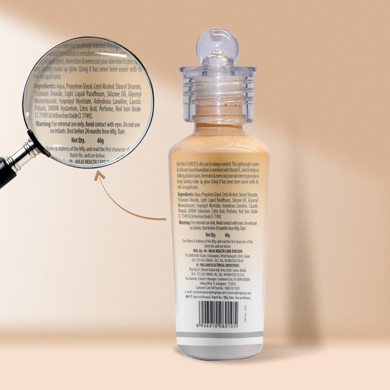 VI-JOHN Roll on Foundation is your answer to a workings women’s barrier to using foundation. It is a lightweight foundation meant for everyday use. It is so lightweight that you won’t even feel you are wearing foundation. It not only blends in effortlessly, but gives a matte finish that lasts through the day. It is extremely convenient to carry. Foundation with new formula that feels soft and incredibly weightless and is perfect for everyday office use. It blends effortlessly onto skin to conceal imperfections with a matte finish that stays through the day. With complete coverage it’s a foundation so weightless you may forget you are wearing any foundation, matte finish in a weightless mousse texture, pocket sized tube that is easy to carry around, complete coverage, lightweight and long wear, It is suitable for all skin types and is dermatologically tested. How to apply: just take a small amount of product with the index finger and start applying it to the skin with your fingertips. Usually, you can just apply the mousse in four places: the forehead, nose, chin and cheekbones. Blend into your skin starting from the center of the skin outwards, taking care to cover your face including your neck.