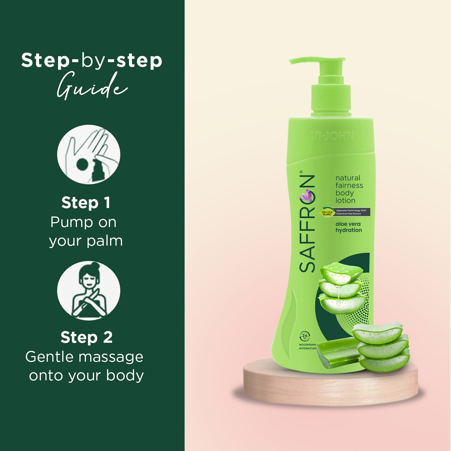 Reveal naturally glowing and deeply hydrated skin with VI-JOHN Saffron Natural Fairness Body Lotion – Aloe Vera Hydration. Infused with the power of pure saffron extracts and the soothing benefits of aloe vera, this nourishing body lotion helps improve skin tone, restore moisture, and keep your skin soft and radiant all day long. Ideal for daily use and suitable for all skin types, it delivers intense hydration without feeling greasy.