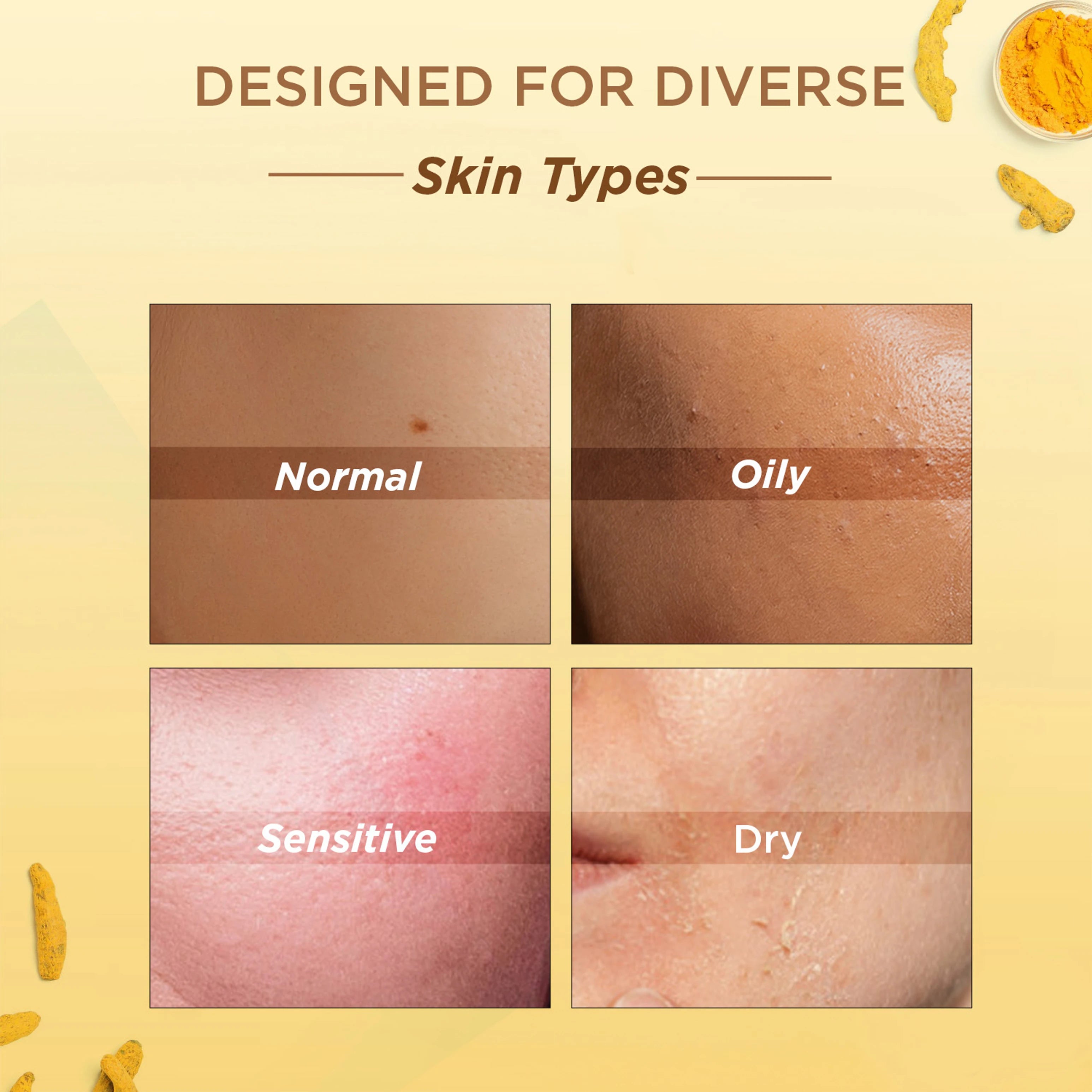 The powerful yet mild formula effectively removes dirt, pollution, and dullness without over-drying, leaving your skin feeling fresh, smooth, and visibly radiant. Turmeric helps in soothing the skin, improving complexion, and supporting a healthy, natural glow.