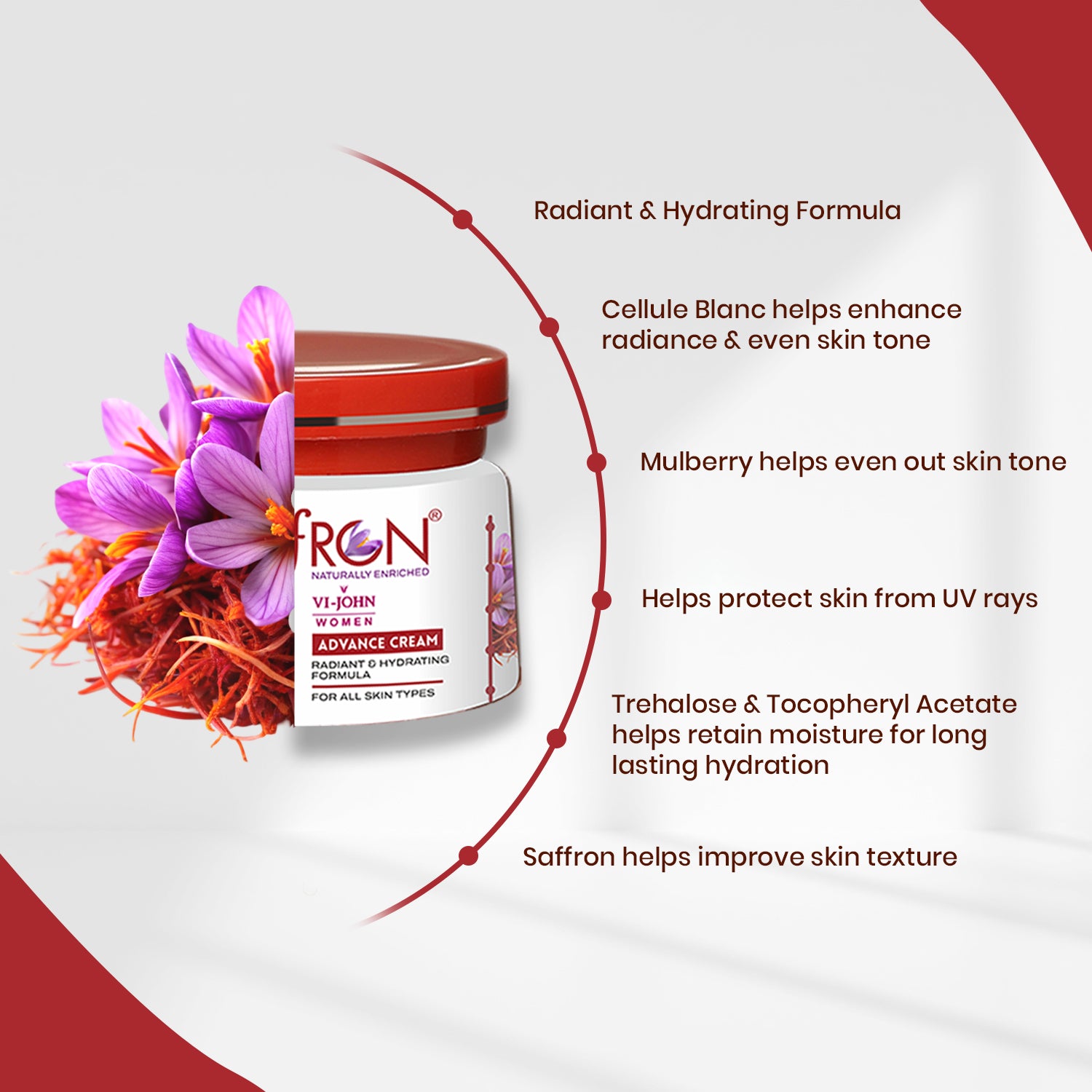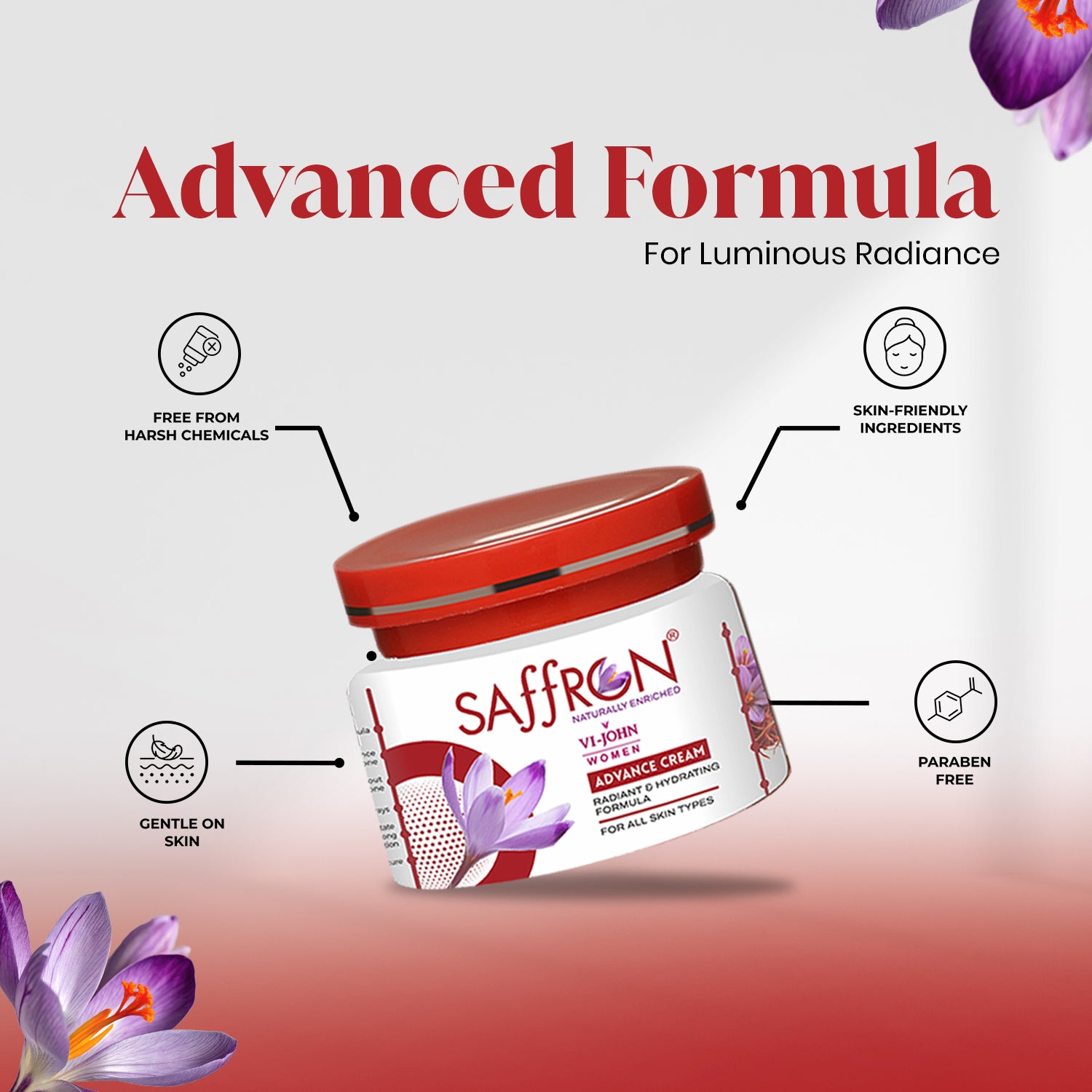 Vi-john brings the Saffron Fairness Cream—Advanced with the latest technology and natural ingredients. The cream is enriched with the goodness of saffron and Vitamin E that not only works on skin lightening but also provides it with much-needed nourishment.